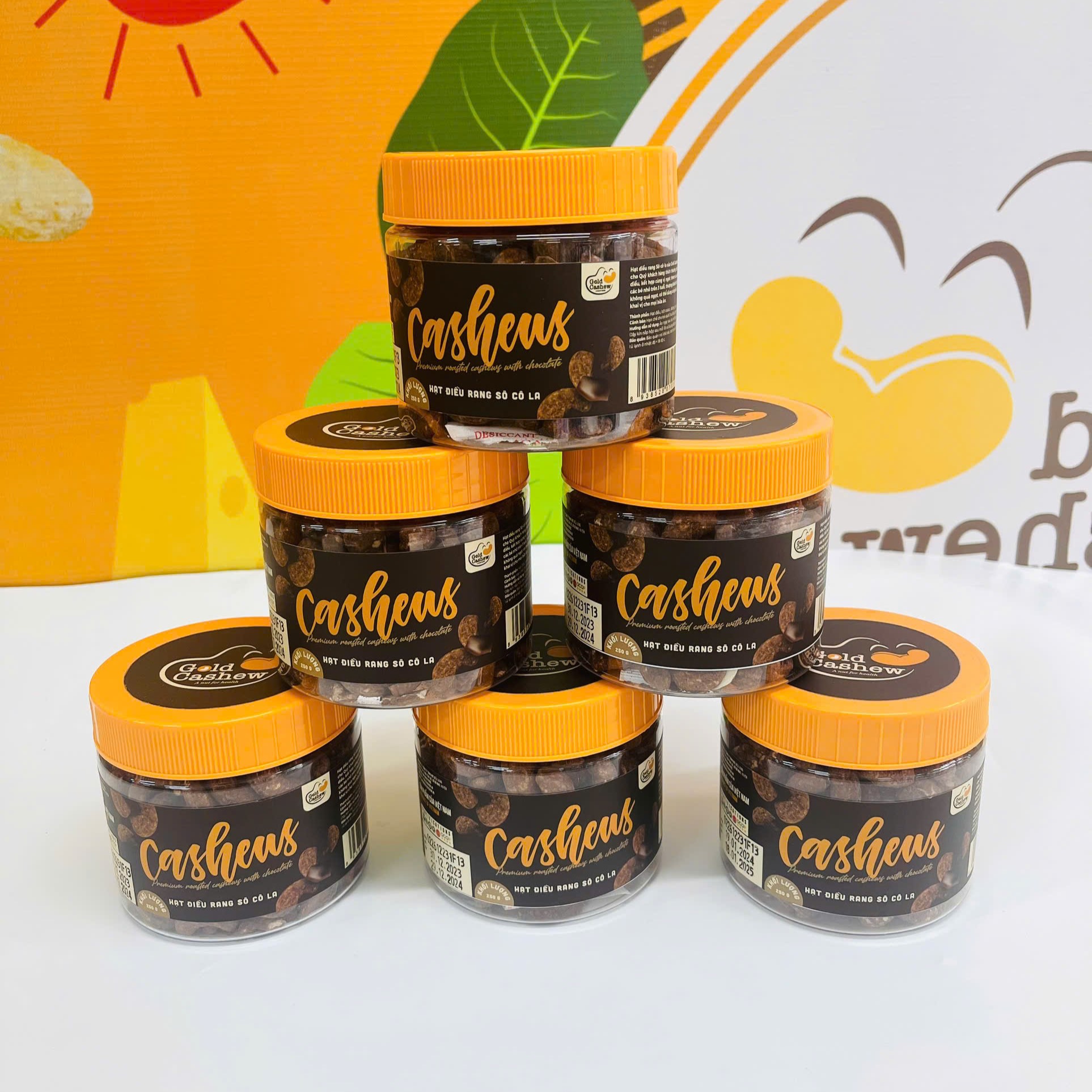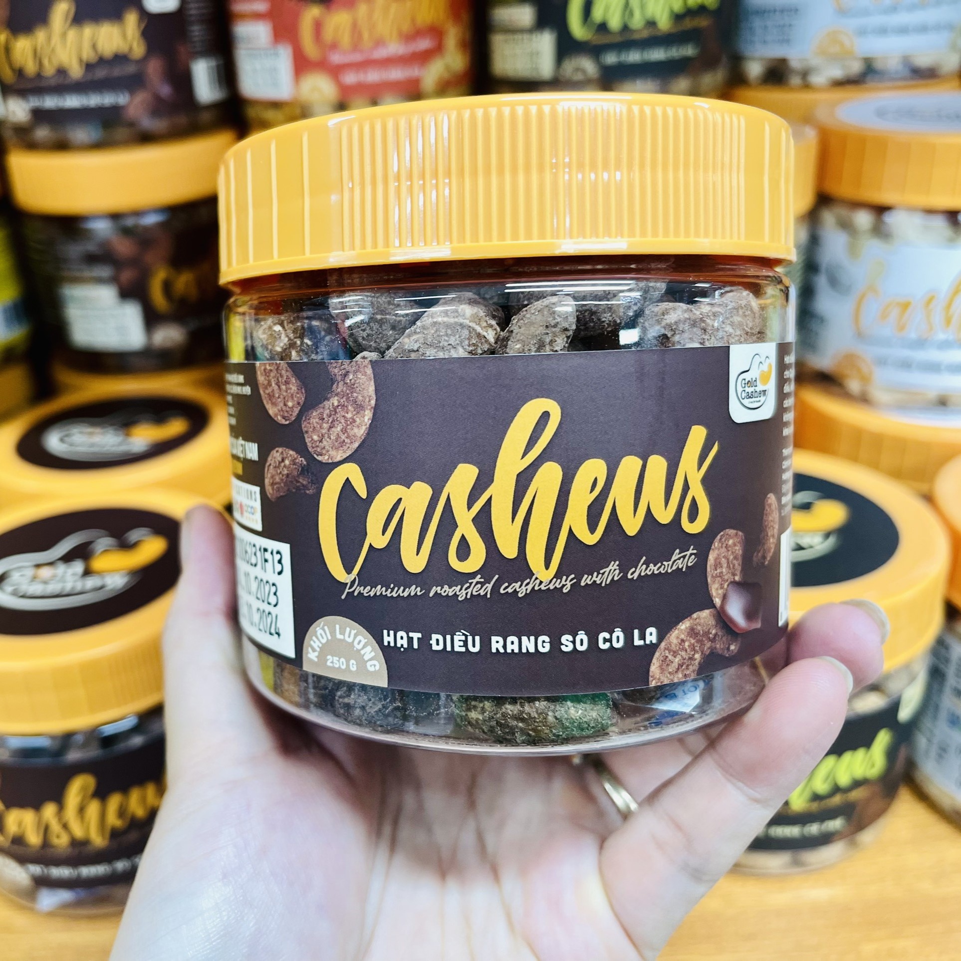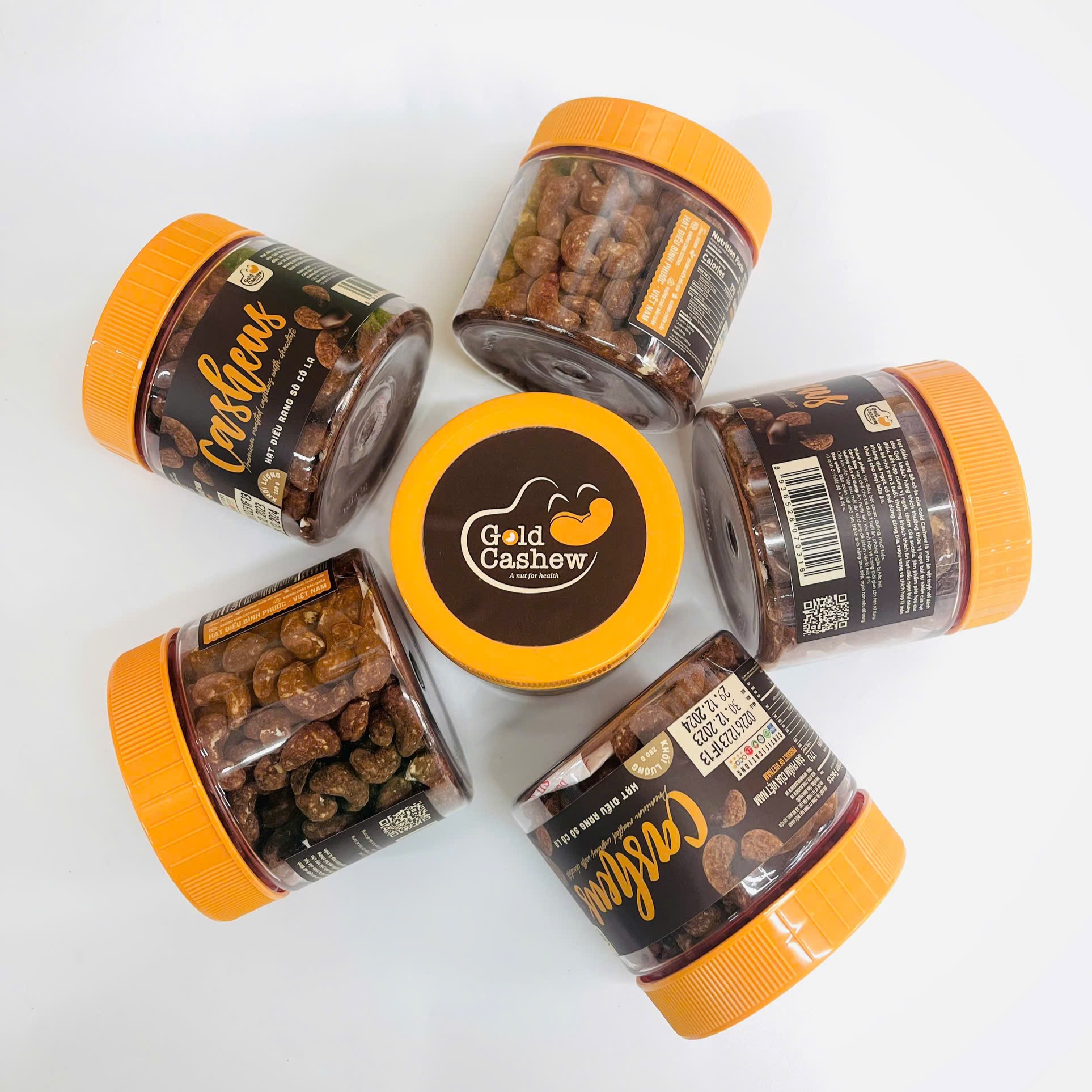 Được chọn lọc kỹ càng từ những hạt điều đã tách vỏ lụa, theo tiêu chuẩn w320 kết hợp cùng muối biển tinh thể, Hạt Điều Rang Socola Cao Cấp GOLD CASHEW chắc chắn sẽ làm hài lòng các fan ruột của hạt điều với vị giòn và béo ngậy tự nhiên của hạt điều kết hợp với sự đậm đà từ cacao và muối biển.